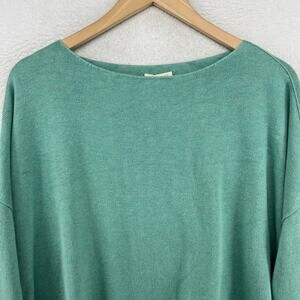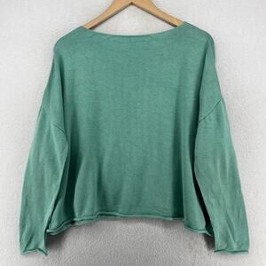 EILEEN FISHER Sweater S Organic Cotton Boxy Boat Neck Roll Hem Oversized Green