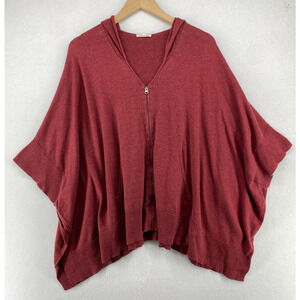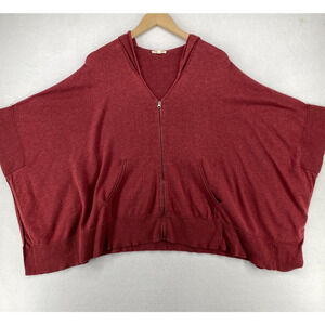 EILEEN FISHER Sweater S Organic Cotton Hoodie Poncho Full Zip Jumper Red