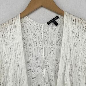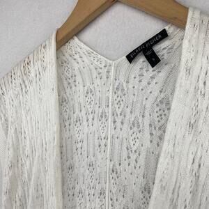 EILEEN FISHER Sweater S Organic Cotton Lace Stitch Duster Cardigan Vest White