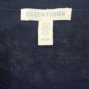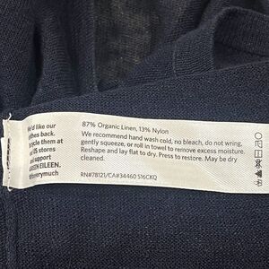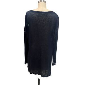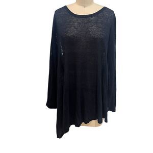 EILEEN FISHER Sweater SZ Med Organic Linen Blend Sheer Asymmetric Pullover Navy