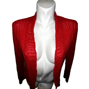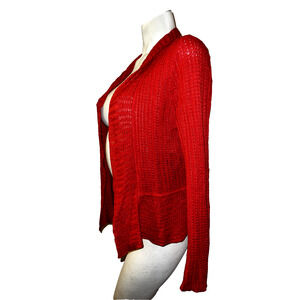 EILEEN FISHER Sweater Size M Burnt Orange Knit Linen Open Cardigan Travel Beach