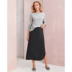 EILEEN FISHER TENCEL Seersucker Check Midi Skirt gray small
