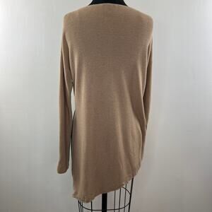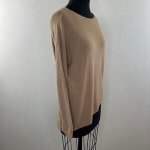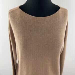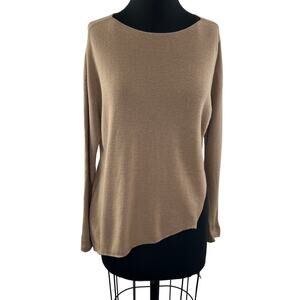 EILEEN FISHER Tan Camel Merino Wool Wide Neck Asymmetrical Pullover Sweater PS