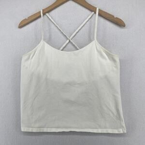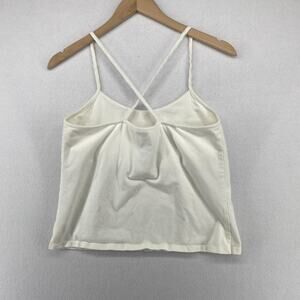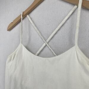 EILEEN FISHER Tank Top M Organic Cotton Jersey Cross Back Shelf Bra White USA