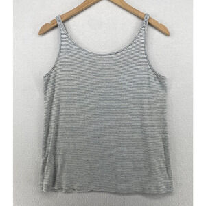 EILEEN FISHER Tank Top M Organic Cotton Jersey Striped Cami Scoop Neck Gray