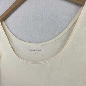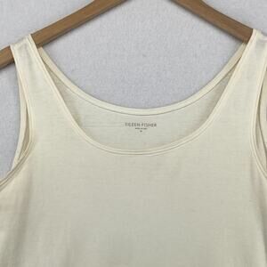 EILEEN FISHER Tank Top M Stretch Jersey Organic Cotton Scoop Neck Off White USA