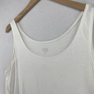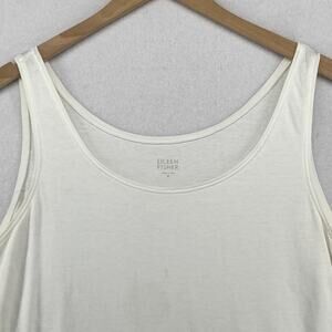 EILEEN FISHER Tank Top M Stretch Organic Cotton Scoop Neck Shell White USA