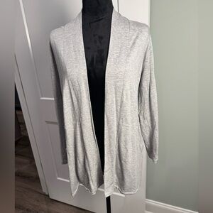 EILEEN FISHER Tencel Lyocell Long Jacket Cardigan Open front Pockets Gray