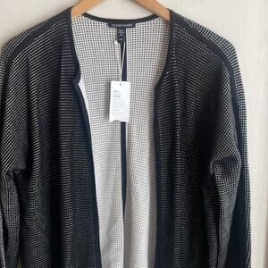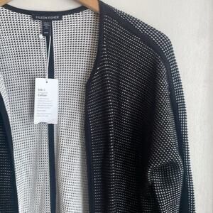 EILEEN FISHER Textured Rib-Knit Trim Open Front Cardigan