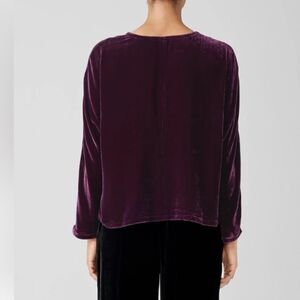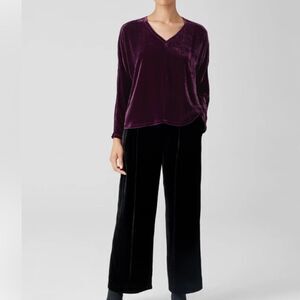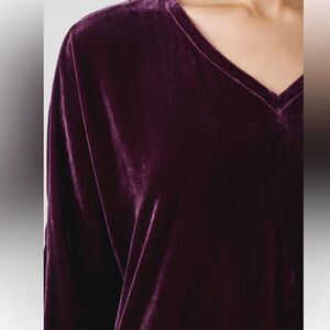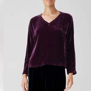 EILEEN FISHER The System Velvet V-Neck Top Long Sleeve Sweet Plum Size Large NWT
