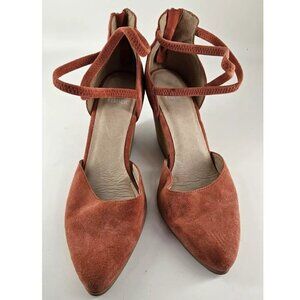 EILEEN FISHER Tilda Pumps Heels Brick Orange Suede Womens Strappy Zip Shoes Sz 7