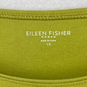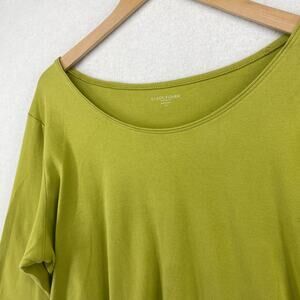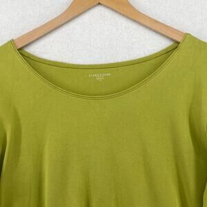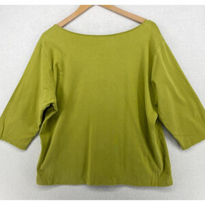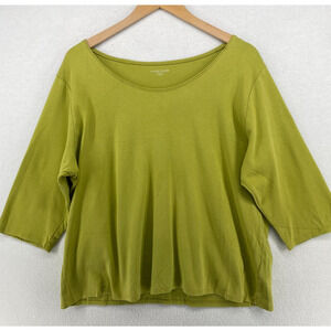 EILEEN FISHER Top 1X Plus Cotton Interlock Jersey Scoop Neck 3/4 Sleeve Green