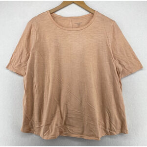EILEEN FISHER Top 1X Plus Slub Organic Cotton Jersey Crewneck Short Sleeve Pink
