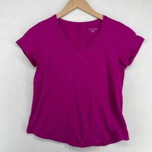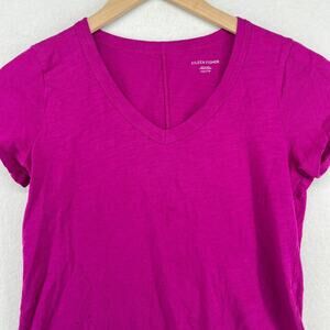 EILEEN FISHER Top 2XS Organic Cotton Slub Jersey V-Neck Short Sleeve Purple