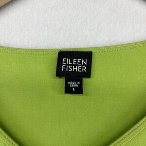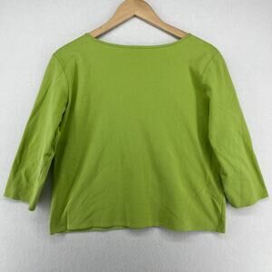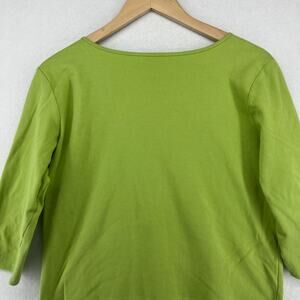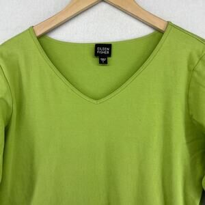 EILEEN FISHER Top L Pure Cotton Interlock Jersey V-Neck 3/4 Sleeve Green