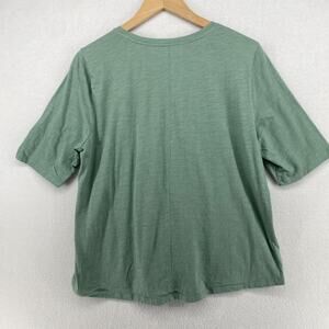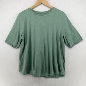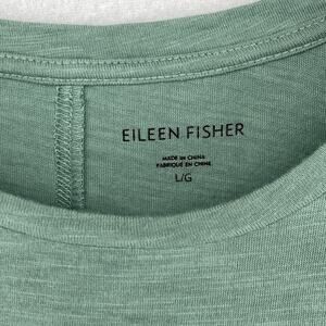 EILEEN FISHER Top L Slub Organic Cotton Jersey Crew Neck Short Sleeve Green