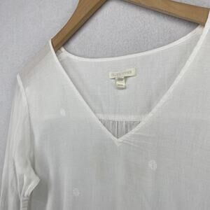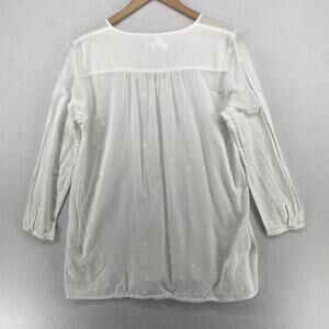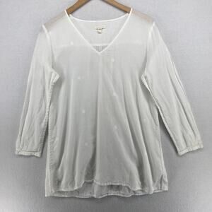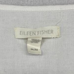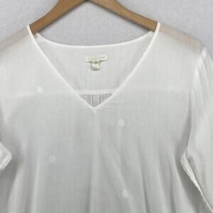 EILEEN FISHER Top M Organic Cotton Filcoupe Gauze Tunic V-Neck Long Sleeve White