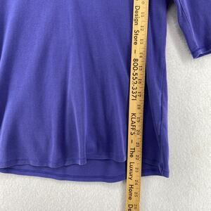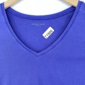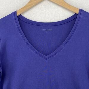 EILEEN FISHER Top S Organic Cotton Interlock Jersey V-Neck Elbow Sleeve Blue