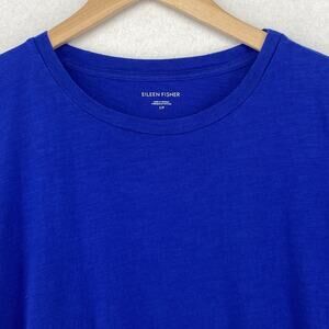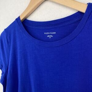 EILEEN FISHER Top S Slub Organic Cotton Jersey Crewneck Short Sleeve Blue