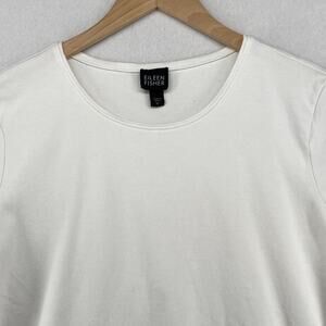 EILEEN FISHER Top XL Cotton Interlock Jersey Round Neck Short Sleeve White