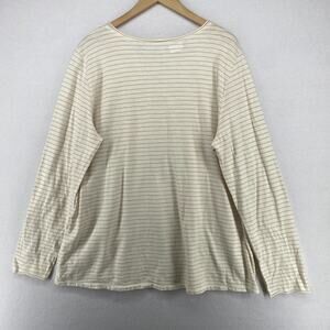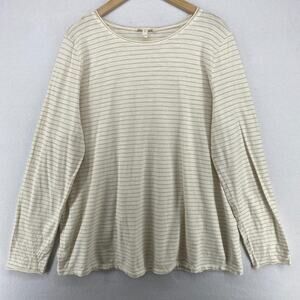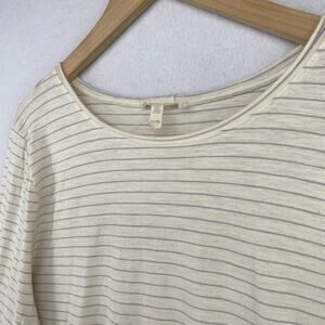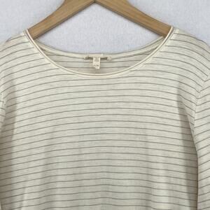 EILEEN FISHER Top XL Organic Cotton Undyed Jersey Gray Stripes Off White