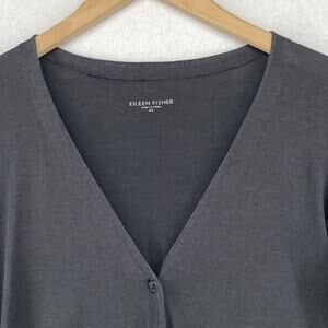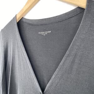 EILEEN FISHER Top XS Silk Cotton Jersey Button Up Cardigan Long Sleeve Gray