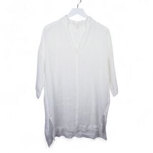 EILEEN FISHER Tunic 100% Organic Linen Loose Weave White V-neck - XS