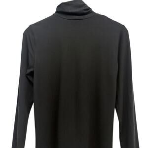 Elevate your wardrobe with this Eileen Fisher black turtleneck jersey top. Crafted from a rayon/lycra blend, it offers comfort and a sleek fit perfect for layering or solo wear in any season.