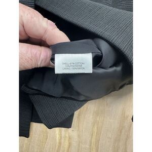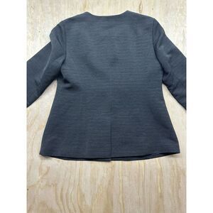 This EILEEN FISHER Variegated Sheen Jacket Blazer in size S is a minimalist and elegant piece for women. Made from a cotton blend outer shell and lined with rayon, it features a stylish black color and a regular fit. The blazer is designed with a sophisticated look, perfect for adding a touch of chic to any outfit. Very small blemish that will wash out when dry cleaned