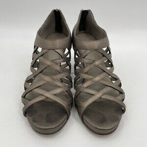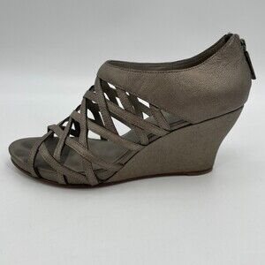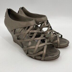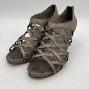 EILEEN FISHER Vero Cuoio Cage Strappy Pewter Zip Heel 3" Wedges Size 10