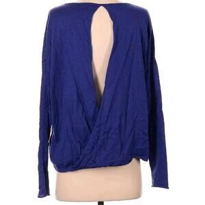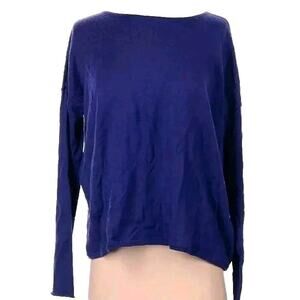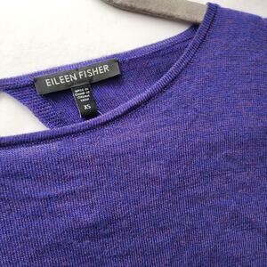 EILEEN FISHER Viola Purple Fine 100% Merino Wool Keyhole Back Sweater XS Boxy