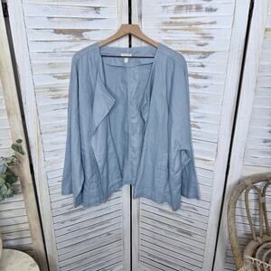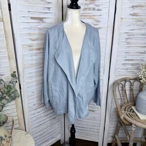 - EILEEN FISHER WOMAN Plus 3X Heavy Organic Linen Open Blazer Jacket Powder Blue -