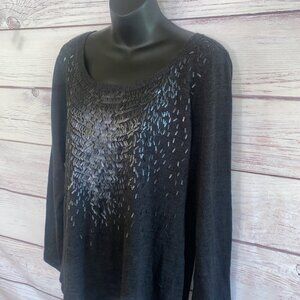 EILEEN FISHER WOMENS SEQUINED MERINO WOOL TOP XL Charcoal Gray Sweater