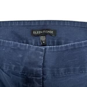 EILEEN FISHER Washed Blue Wide Leg Crop Cotton Blend Pants. Size Medium Womens. Relaxed Fit. Cotton-tencel-spandex blend. Intentionally broken in look. Style #S4WE0-3. Retail: $128. Several lightened spots on back and bottom of pants & minor fading due to normal wash/wear (see photos). In otherwise very good condition -- no rips or holes.
