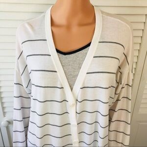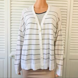 EILEEN FISHER White Black Striped V-Neck Boxy Lightweight Cardigan Size Medium