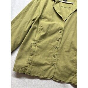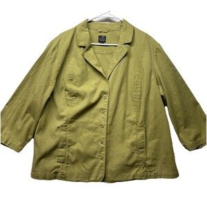 EILEEN FISHER Women Organic Cotton Button-Up Olive Green Blazer Jacket 2X *note*