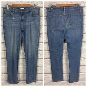 EILEEN FISHER Women's 12 Blue Organic Cotton Blend Straight Denim Stretch Jeans
