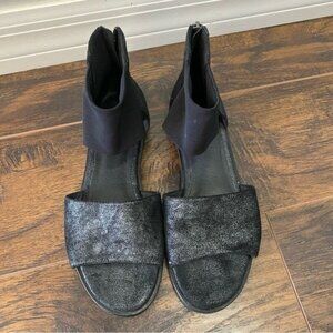 EILEEN FISHER Women's 7 Black Sign Sandal Open Toe Comfort Flat Sandals Size 7 •
