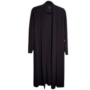 EILEEN FISHER Women's Open Front Long 100% Wool Dark Brown Cardigan Size XSmall
