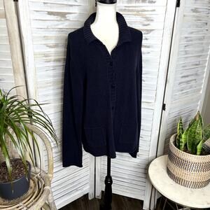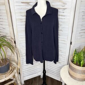 - EILEEN FISHER Women's Organic Cotton Grandpa Cardigan Sweater Pockets Navy XL -
