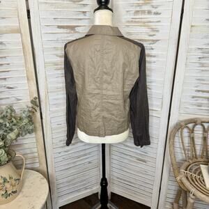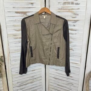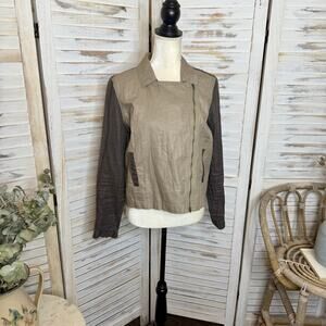 - EILEEN FISHER Women's Petite L Organic Coated Linen Utility Moto Jacket Stone -