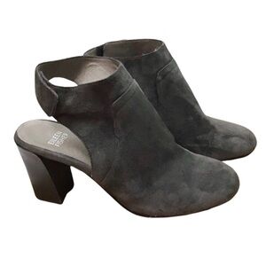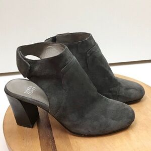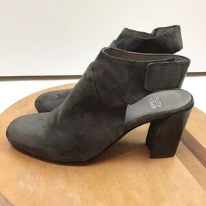 Sleek Eileen Fisher suede heeled Slingback bootie in charcoal grey