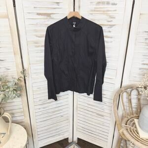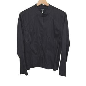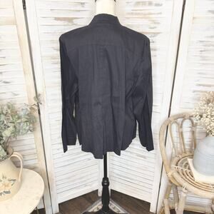 - EILEEN FISHER Women's XL Italian Linen Button Blazer Black Mandarin Collar Moto -