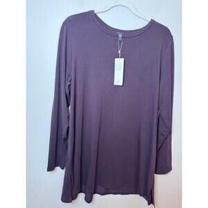 EILEEN FISHER Women's XL Stretch Tencel Jersey Long Sleeve Tunic Top Cassis NWT