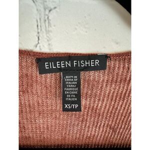 EILEEN FISHER brown organic linen blend open front knot knit cardigan sweater XS