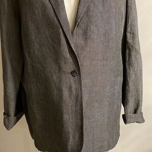 Eileen fisher relaxed fit linen / viscose blend one button closure jacket blazer