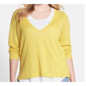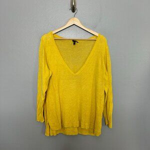EILEEN FISHER yellow 100% linen v neck sweater size 1X