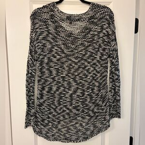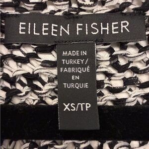 EILEEN FISHER Scoop Neck Open Weave Sweater Black White Women’s Size XS