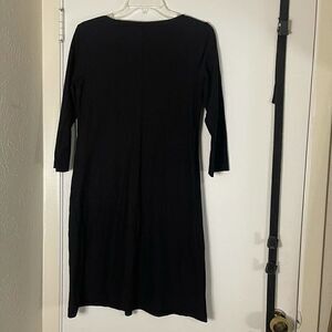 EILEEN FISHER TWIST FRONT CREPE DRESS BLACK 3/4 SLEEVE SIZE SMALL