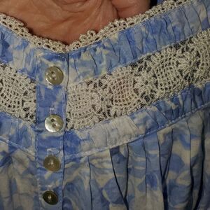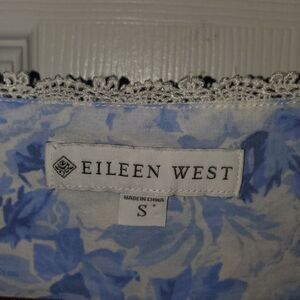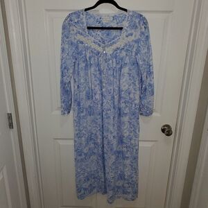 EILEEN WEST BLUE WHITE FLORAL & LACE COTTON LONG SLEEVE NIGHT GOWN SIZE SMALL